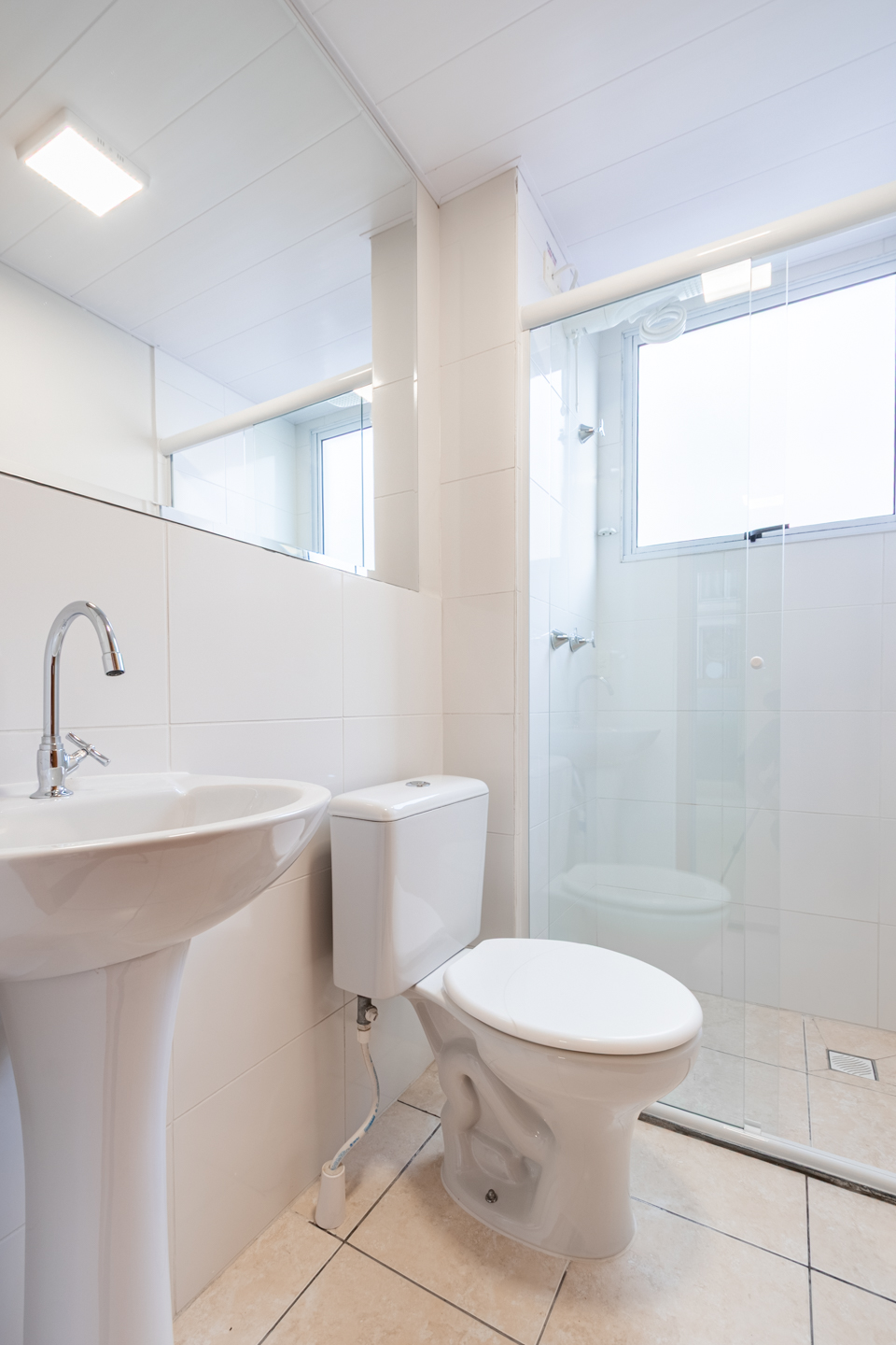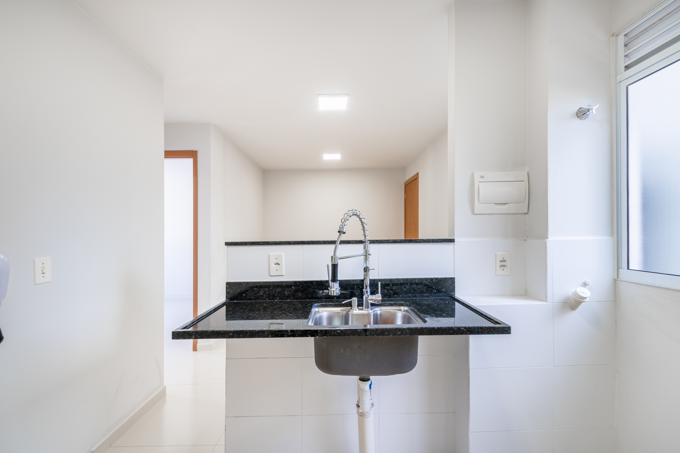 Com pia de granito na cozinha, torneira com ducha, box de vidro blindex e chuveiro. Piso de cerâmica com impermeabilizante.
